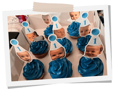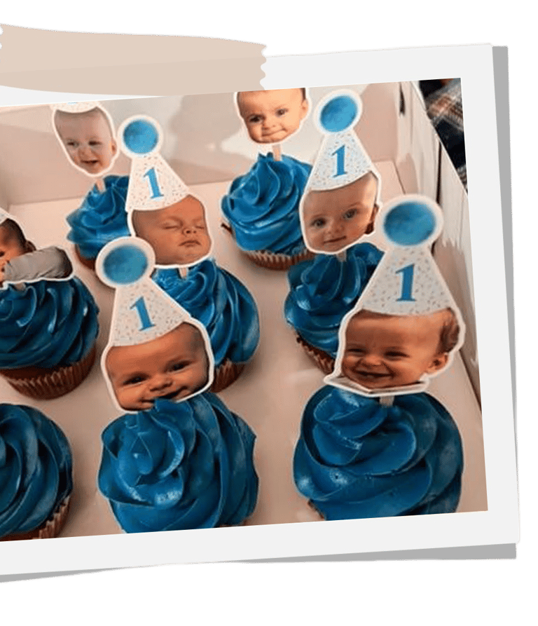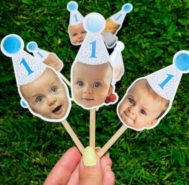 Ne krijojmë dekorime të personalizuara me fytyrat dhe temat që doni ju – për ditëlindje, baby shower, fejesa, syneti, evente dhe çdo rast të veçantë.