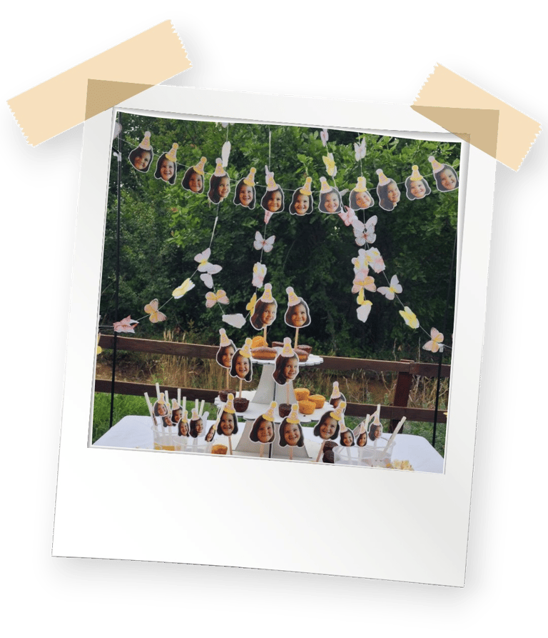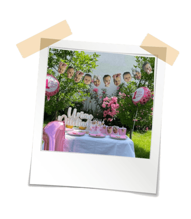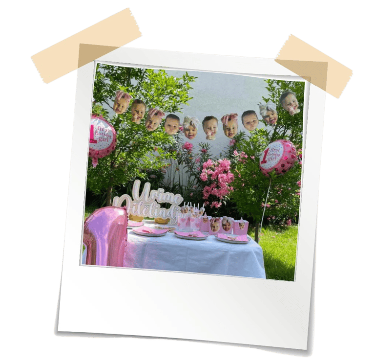Ne krijojmë dekorime të personalizuara me fytyrat dhe temat që doni ju – për ditëlindje, baby shower, fejesa, syneti, evente dhe çdo rast të veçantë.